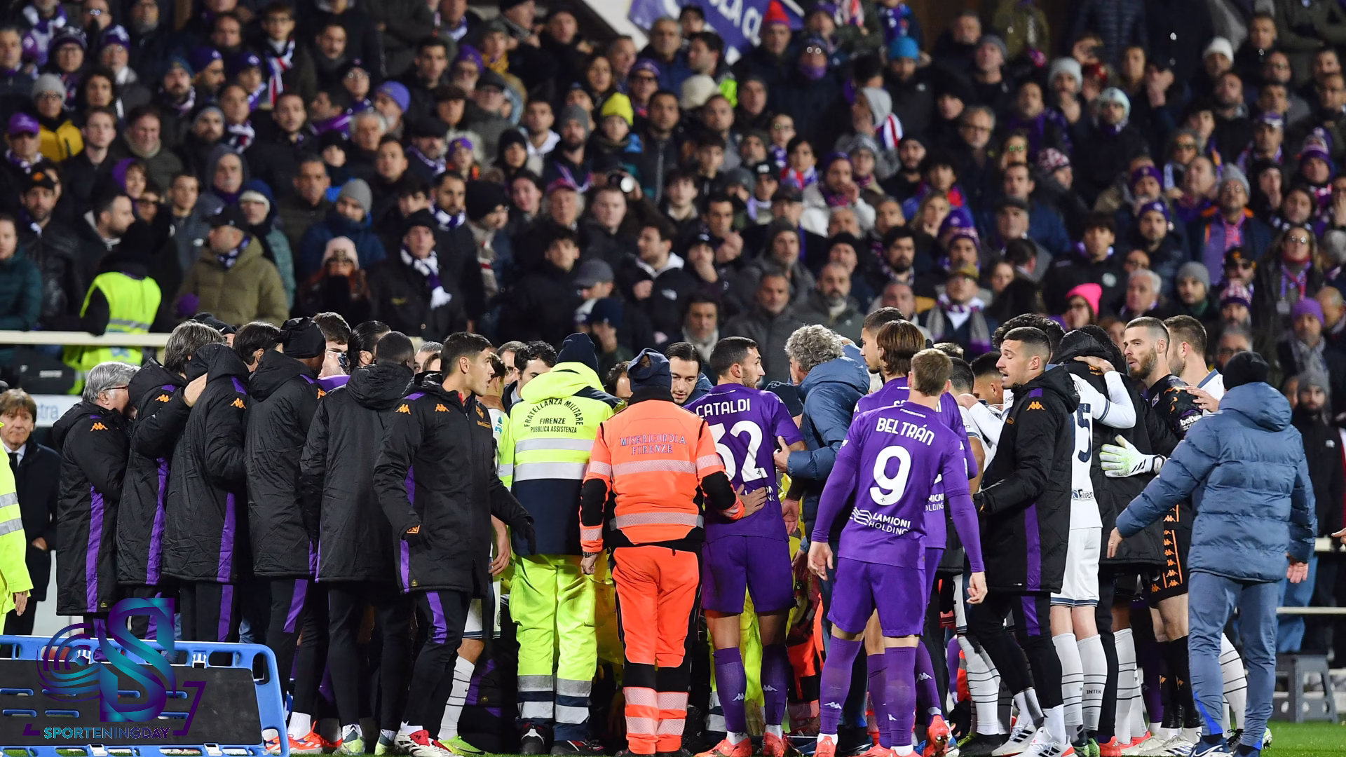 The match was halted after 17 minutes when Fiorentina player Edoardo Bovi suddenly collapsed on the field, causing panic among the spectators. Bovi had been attempting to adjust his shoes when he unexpectedly fell to the ground, prompting his teammates to react in distress, with some visibly shaken and in tears due to the alarming nature of the incident.